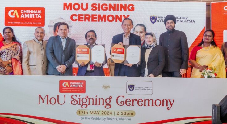 The MOU signing ceremony was attended by Assoc. Prof. Dr. Faiz Aizat Bin Ab Manan, Chief Executive, Kalaiarasan, Founder ofTharshal Academy, Malaysia, Jainanak Singh, Founder of Training Minds, Malaysia and Madam Salina Binti Ahmad, Advisor of University College of Aviation, Malaysia, along with dignitaries from Chennais Amirta Group of Institutions, including CEO Ms. Kavitha Nandakumar, Dr. Milton, Dean and Banumathi.B, Head – University Affairs.