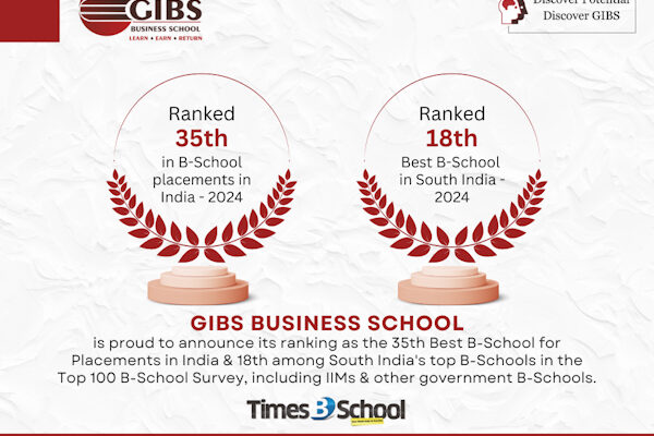 GIBS Business School is pleased to recognize its remarkable achievement in the Times B School Top 100 B-School Survey conducted by i3 Research Consultants. As proof of GIBS’ dedication to excellence, the school was placed 35th for Best Placements in India and 18th among top B-schools in South India based on an evaluation methodology known as the i3RC-BRM model, which evaluates institutions on three key dimensions – Resources, Effort and Outcomes.