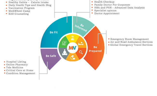 MediWheel, a leading healthtech company, is revolutionizing the way employee well-being is approached in the corporate sector. They offer a comprehensive suite of wellness services to large and MSME corporations, as well as retail customers. These services include pre-employment health check-ups, annual health check-ups, telemedicine helplines, mental wellbeing helplines, on-site doctors and medical rooms, specialist appointments, access to an e-pharmacy and condition management programs which are all interconnected with the Digital Health Record and Health Risk Assessment suite to make sure that all health records are utilised for targeted benefit of each individual.