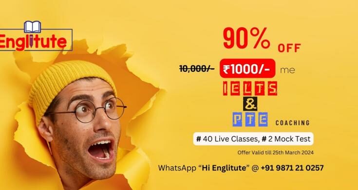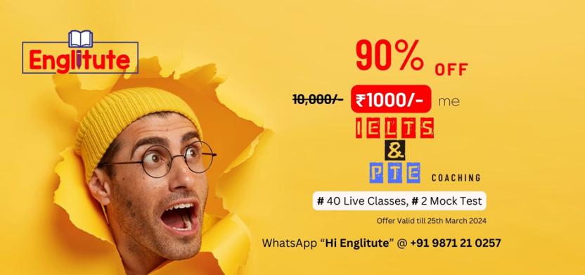 Englitute, Delhi’s Premier Coaching Institute, is thrilled to announce a game-changing opportunity for aspiring IELTS & PTE test-takers!** For a limited time only (registration closes March 25th, 2024), you can unlock your full potential and dominate the exam with a massive 90% discount on our comprehensive coaching program.
