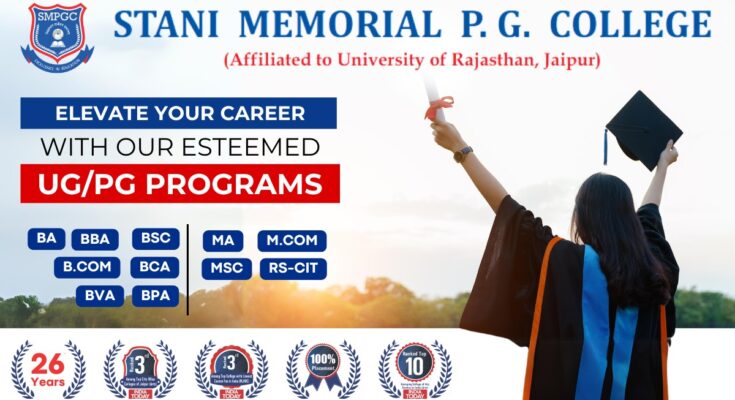 ‘STANI MEMORIAL P.G COLLEGE (SMPGC) is a renowned institution of higher education located in Jaipur, Rajasthan, India. Established in 1998 with the noble aim of “In Pursuit of Excellence in Education, SMPGC has consistently strived to uphold its reputation as one of the Best graduation colleges in Jaipur Rajasthan. The college stands as a beacon of creativity, excellence, and innovation, offering a conducive environment for holistic student development.