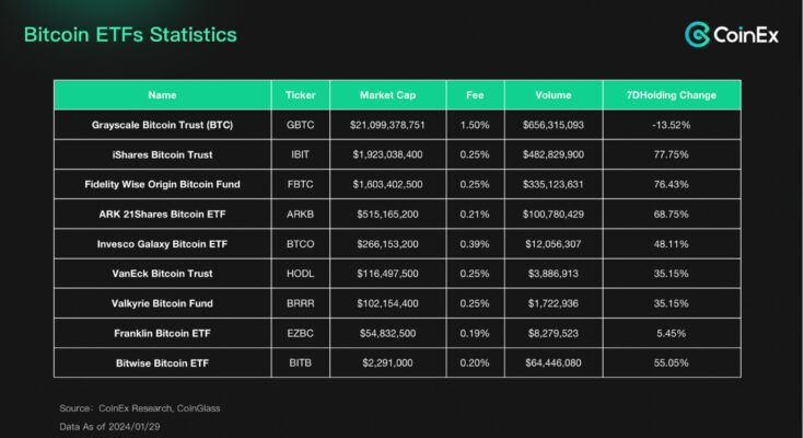 Currently, there are 11 approved Bitcoin ETFs, with a total assets under management (AUM) of $27.2 billion. The top three in market capitalization are GBTC, IBIT, and FBTC, respectively. It is foreseeable that there will be intense competition for market share among issued ETFs, with only 2-3 ETFs likely to remain in the end.